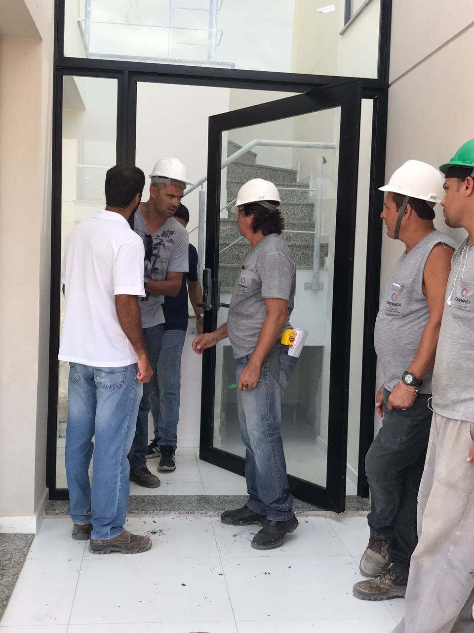 Nesta quarta-feira (25), estivemos no Sofisticato Residence, no bairro do Recreio dos Bandeirantes, reunidos com engenheiros e representantes da empresa Confiança, responsável pela confecção das portas do empreendimento.