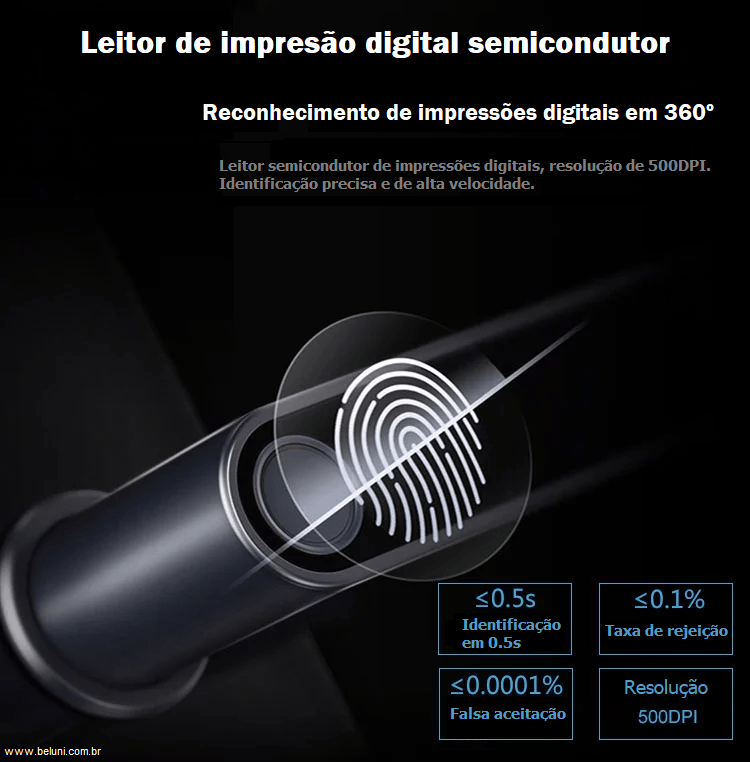 Com a Beluni Bioconnect Plus Smart, você terá acesso aos mais avançados métodos de abertura, incluindo biometria, senha, cartão Rfid, chave mecânica e o aplicativo Ttlock via Bluetooth.