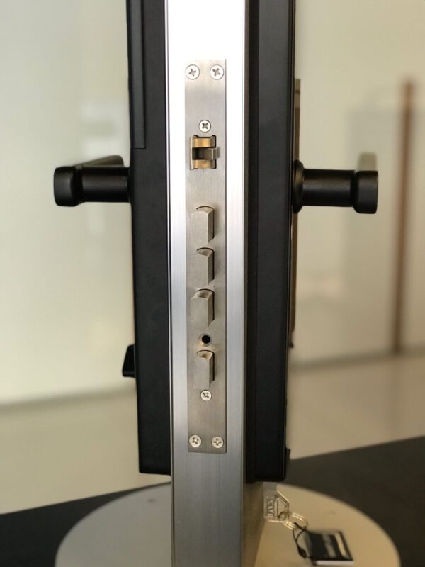 Máquina de segurança de embutir em aço inox com 1 lingueta e 3 trincos.